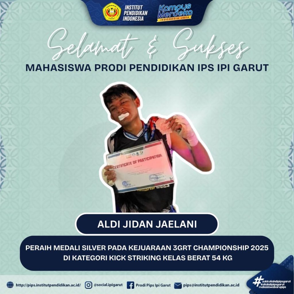 Selamat dan sukses kepada Aldi Jidan Jaelani, Mahasiswa Prodi Pendidikan IPS IPI Garut, atas prestasi membanggakan dengan meraih Medali Silver pada Kejuaraan 3GRT Championship 2025 kategori Kick Striking kelas berat 54 kg.
