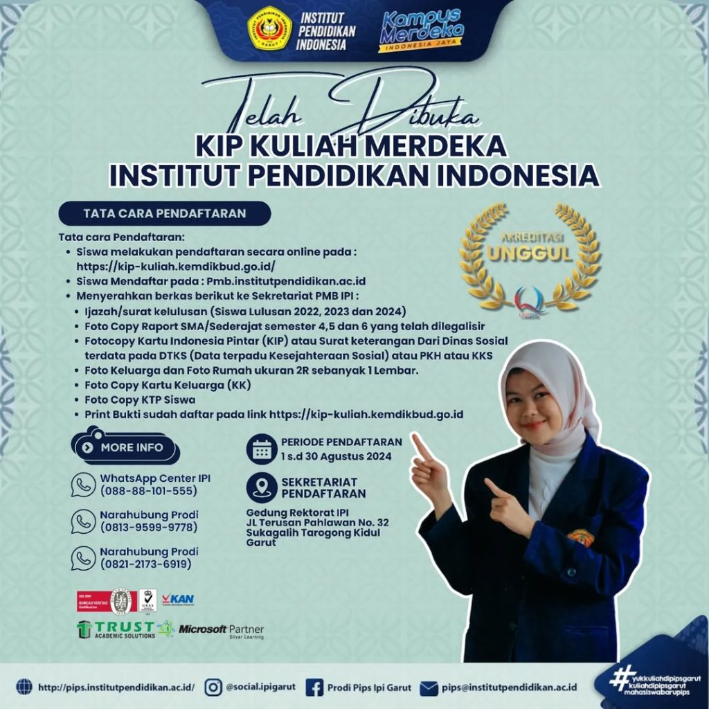 Hallo Sobat Social, Hallo Sobat Social! Telah Pendaftaran KIP Kuliah Kemerdekaan IPI Garut Tahun Akademik 2024-2025 Gratis Biaya Pendaftaran Pendaftaran: 1 sd 30 Agustus 2024 Tata Cara pendaftaran di atas ya Update informasi setiap harinya bersama kami melalui: Web resmi: Read more