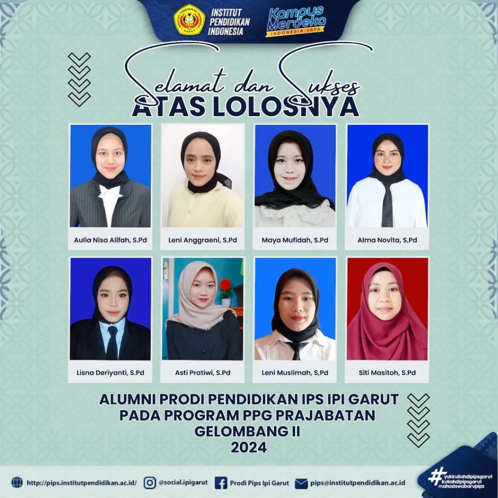 [Selamat dan Sukses] Salam Social Selamat dan Sukses Kepada Alumni Prodi Pendidikan IPS IPI Garut Lolos Pada Program PPG Prajabatan Gelombang II Tahun 2024 Semoga bisa menjadi motivasi dan inspirasi bagi kita semua untuk semangat berkarya dan mengembangkan minat bakat++ Read more
