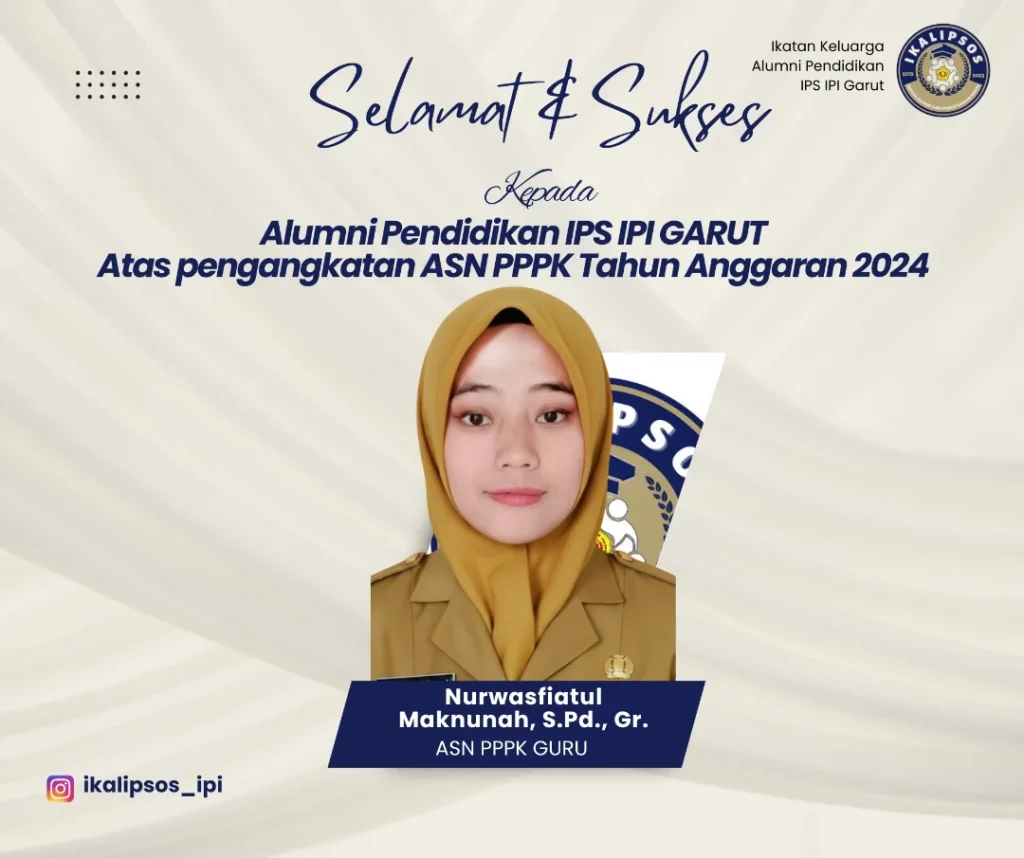 Rasa Syukur dan ucapan selamat kami haturkan kepada lulusan Pendidikan IPS IPI Garut angkatan 2018 yaitu ibu Nurwasfiatul Maknunah, S. Pd., Gr yang telah diangkat PPK Guru. Semoga selalu diberikan keberkahan dan kelancaran semuanya. Aamiin✨️
