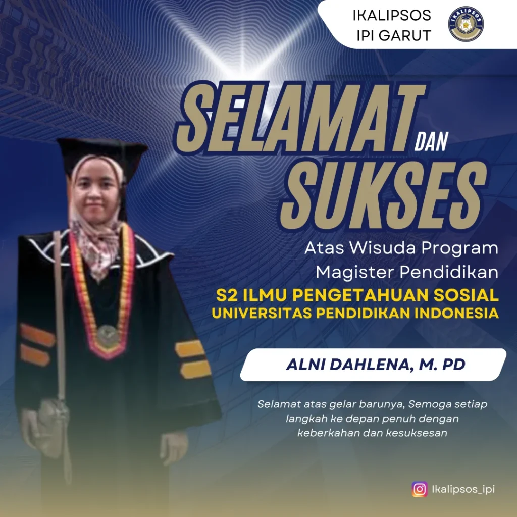 Selamat kepada Alumni Pendidikan IPS IPI Garut bu Alni Dahlena, M. Pd yang telah menyelesaikan Program Magister Pendidikan IPS di universitas Pendidikan Indonesia. Semoga dengan gelar barunya berkah dan sukses selalu. Aamiin✨️